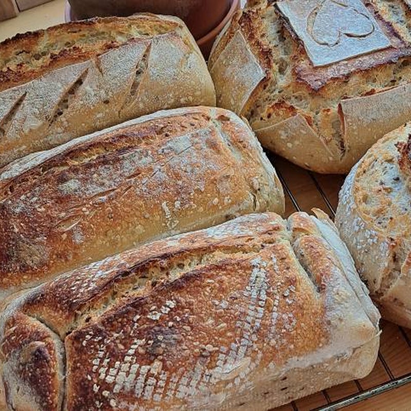 In Nederland waren we ook al begonnen met het bakken van eigen brood. Echter was dit niet op frequente basis. Eenmaal in Zweden is dit een nieuwe wekelijkse routine geworden. Op de eerste plaats omdat we het brood uit de winkel echt niet lekker vinden. In de broden worden veel ingrediënten toegevoegd, ook suiker. Dat vinden we én niet nodig én echt niet lekker en op de tweede plaats omdat Elle ook met veel plezier bezig is in de keuken. Dus zodoende kwam het idee om zelf weer brood te gaan bakken. Dit pakte zo goed uit, dat het een wekelijks terugkerende activiteit is geworden. We begonnen met "gewoon" brood met gist, later begonnen we te experimenteren met zuurdesem, welke nu ons favoriet is voor ons dagelijkse brood.